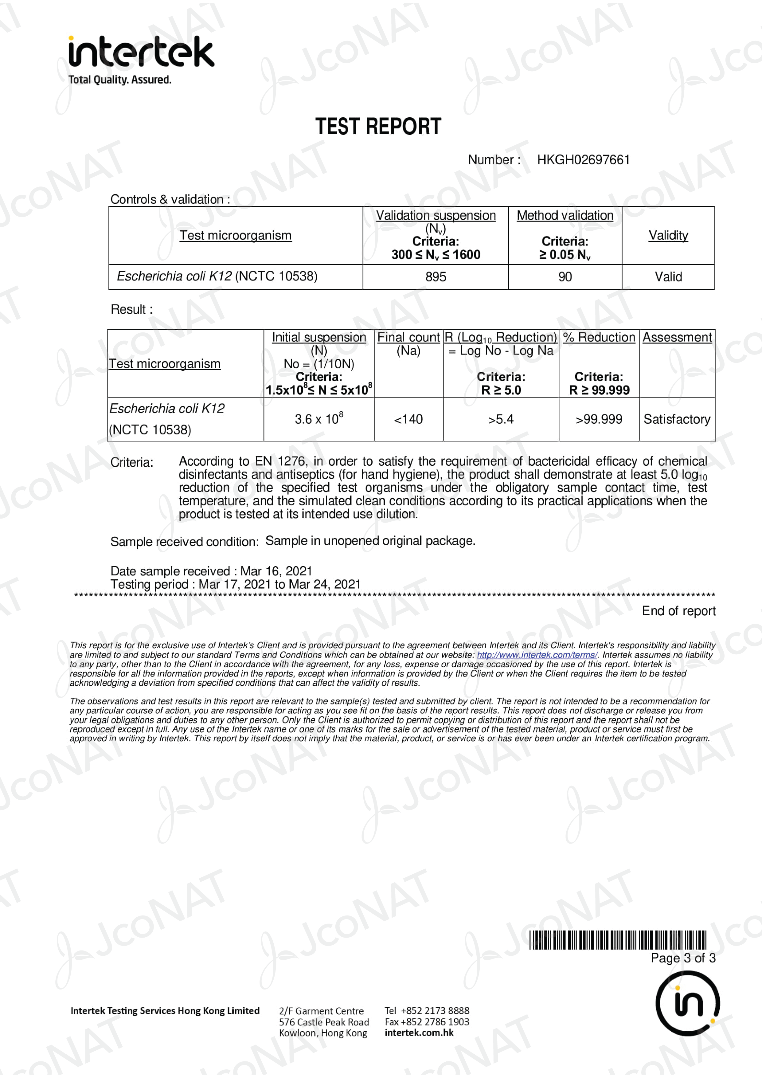 EN1276:2019 大腸桿菌 Escherichia Coli